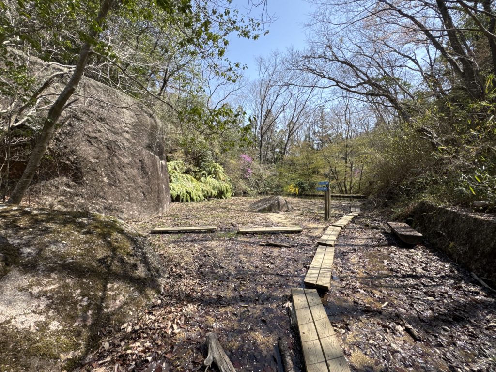 園地へ入ると程なく「さわわたりの路」への登り口…ここから「八つ橋」を目指す…そこがカタクリとミズバショウの生育地