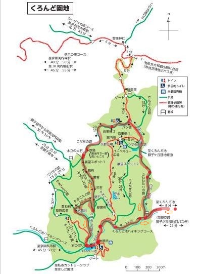 くろんど園地マップに歩行ルート(淡い紅色)を表示させて頂いた🙏