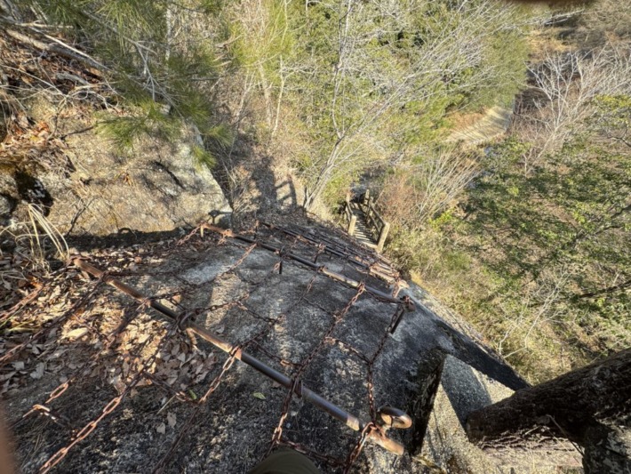 鎖場を上から覗くと鎖の下部が見えない…高所恐怖症にはタマランぞ〜😰💦