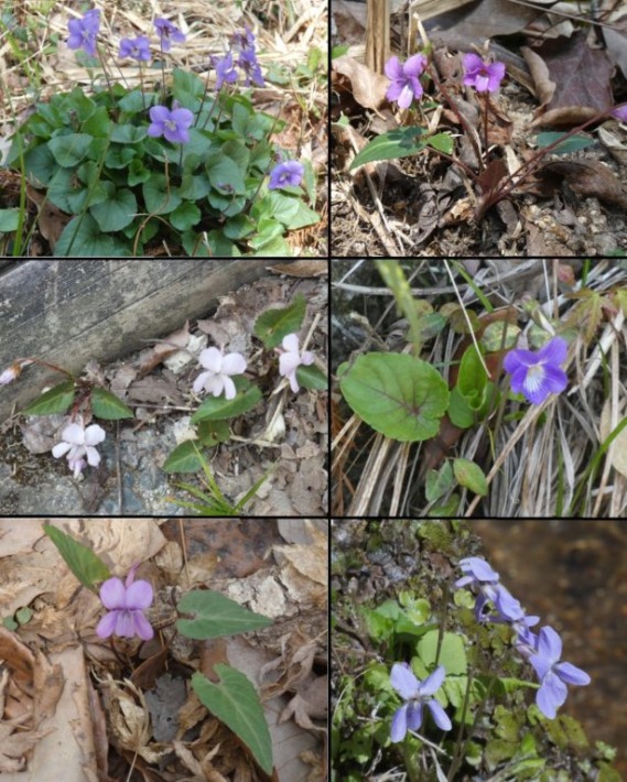 この園地で特に多く見かけ、お会いした方が教えてくれた右上のスミレ…葉っぱの裏が紫色なので、シハイスミレとか…これまで多分そうかな(自信なく)と思ってたけどね😉