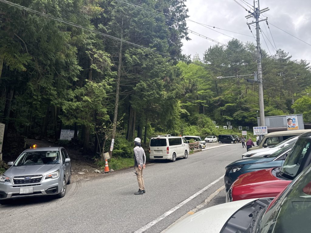 🔷正午前「百ケ辻登山口」着…土曜日だけど、金剛山ケーブル・香楠荘撤去工事の関係車が往来してる。 登山スタート12:00