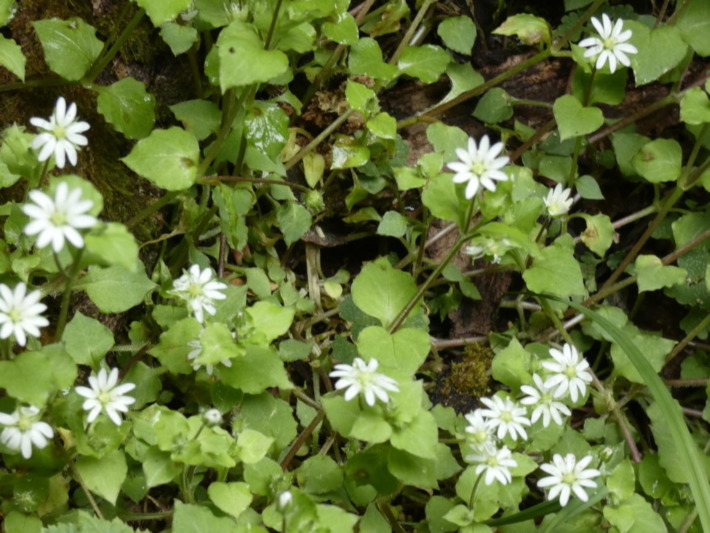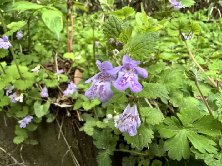 溝端にもお花の群生…時々見かけるカキドオシ(垣通し)も今日は一段と愛らしい😚