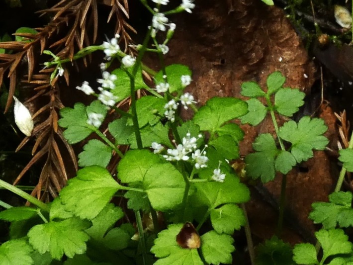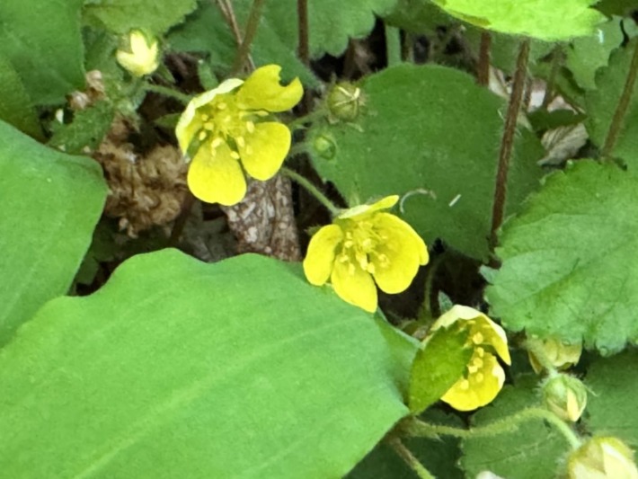 こちらはピントが右側の雌雄異株ヒメウワバミソウ(姫蟒蛇草)に合っちゃったな…雄花が花開きかけてるね…まさにミズミズしくて山菜ファンにモテそう🤤