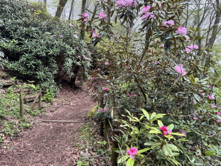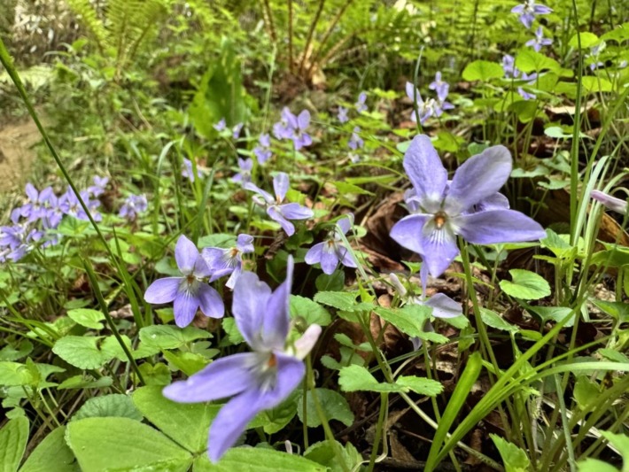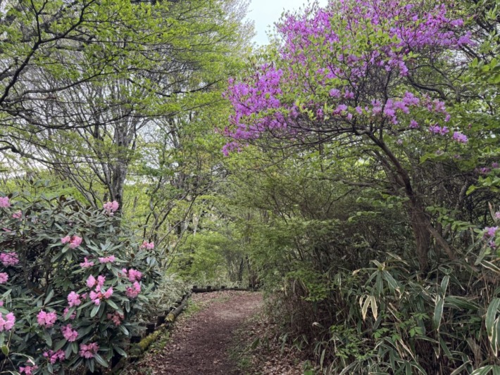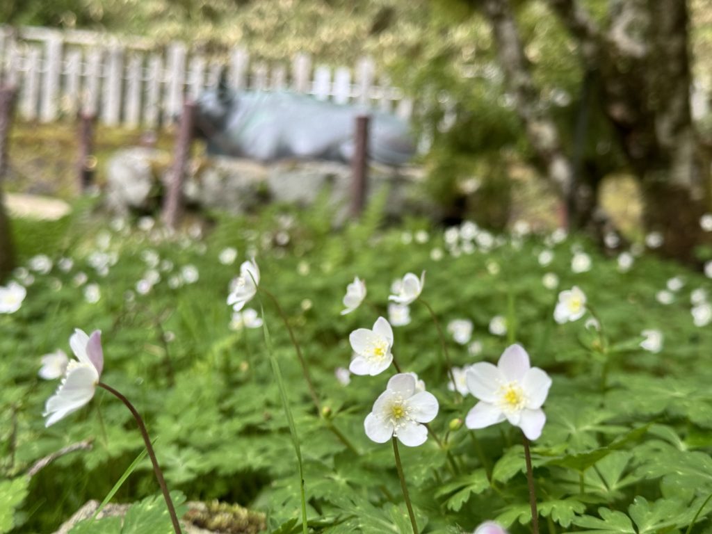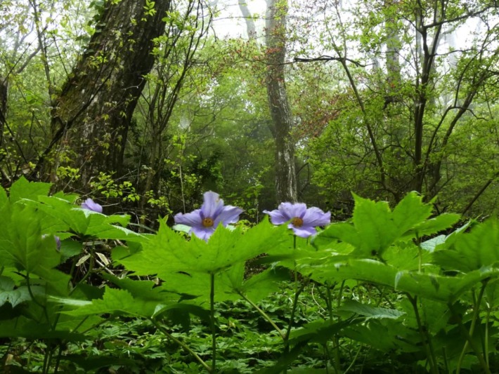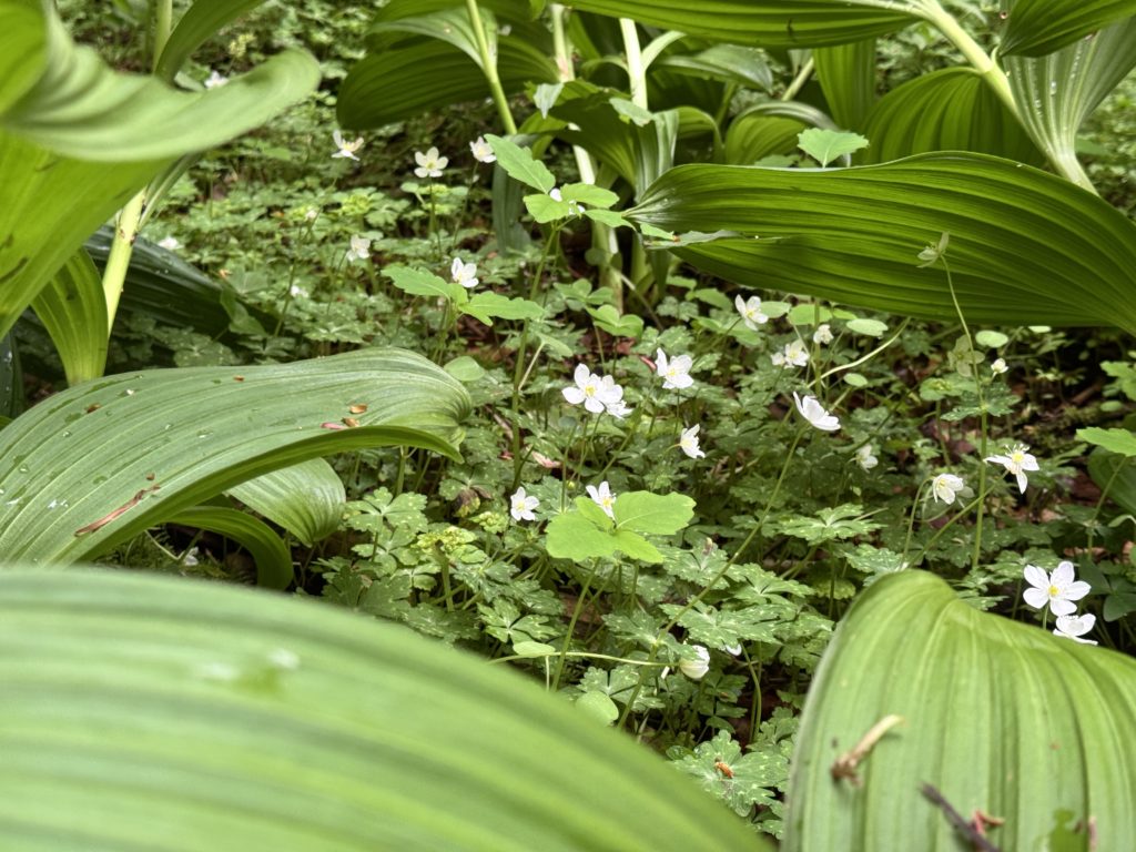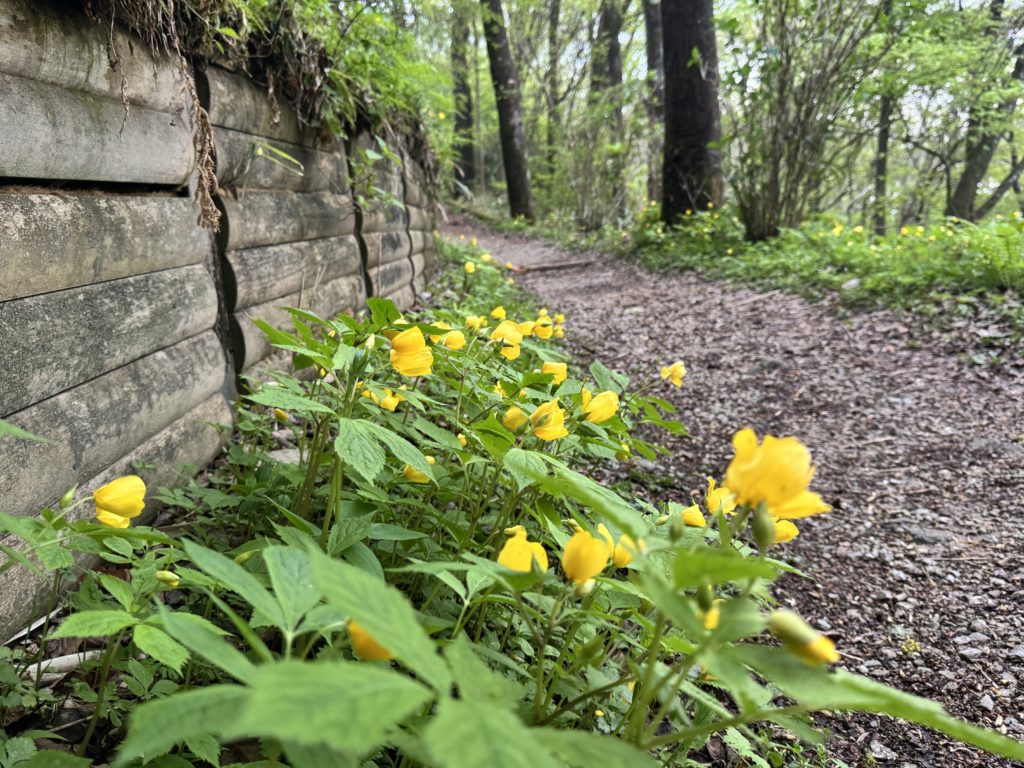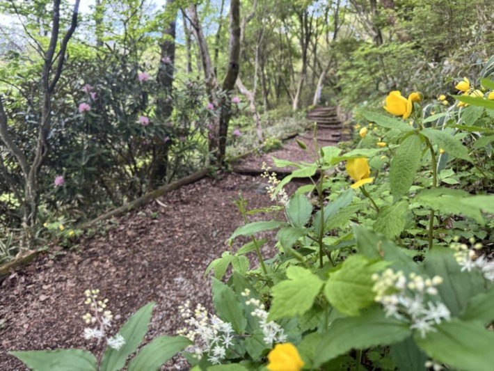 山植物の遊歩道…すっかり葉が茂ったフクジュソウや姿を隠していくキクザキイチゲなどのそばを通り、進みゆくと…