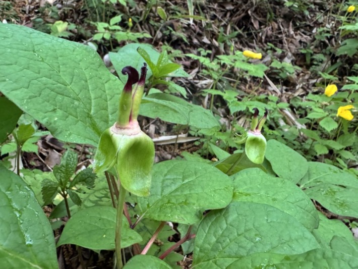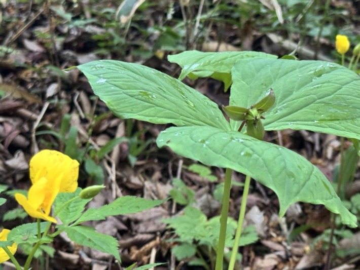 花らしくない花を付けたエンレイソウ(延齢草)もいっしょに…