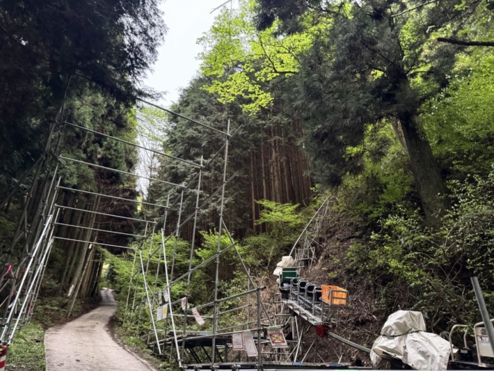 念仏坂の急坂を過ぎあたりで、物々しい鉄パイプ造作とモノレール…荷物積んで5人ぐらい乗れそうだけど….凄い急登😰💦