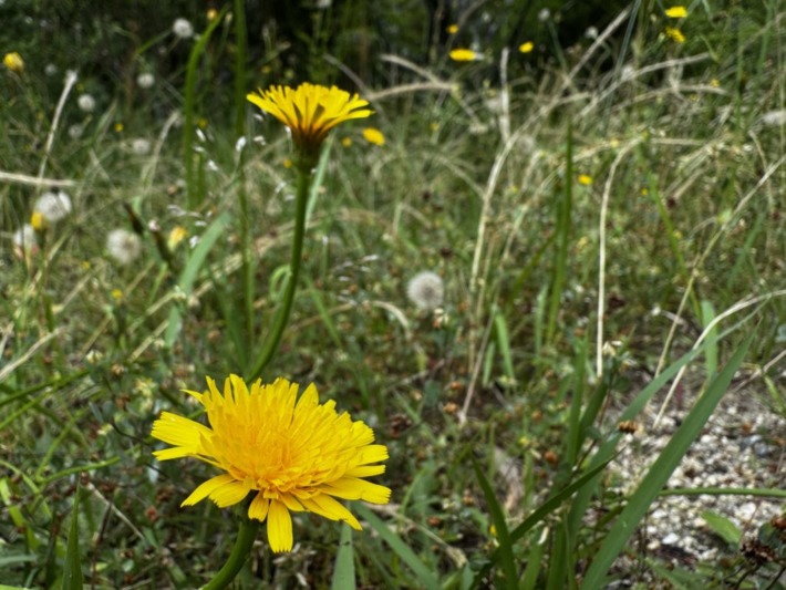 ブタナ(豚菜)いっぱいの広場…もう綿毛(冠毛)になったのも多いけど、早い気が…