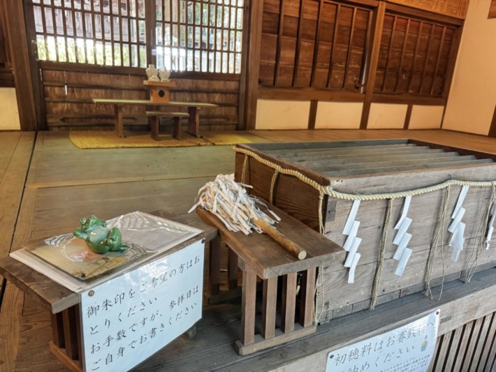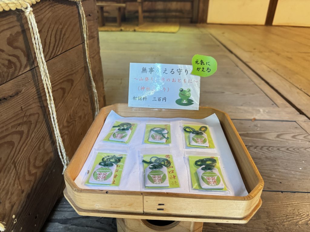 無事かえるお守り…賽銭箱にお代(初穂料)を入れて頂戴しました🙏