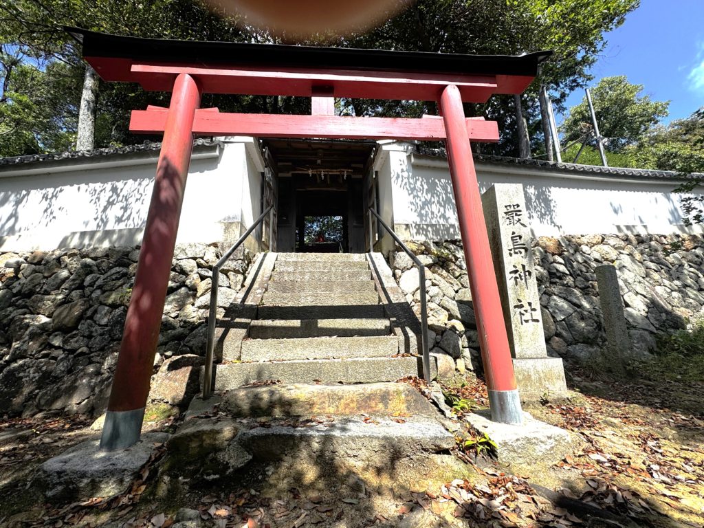 北側の厳島神社にお参り…横の急坂を登りゆく…直ぐに息が上がる…運動不足露見💦