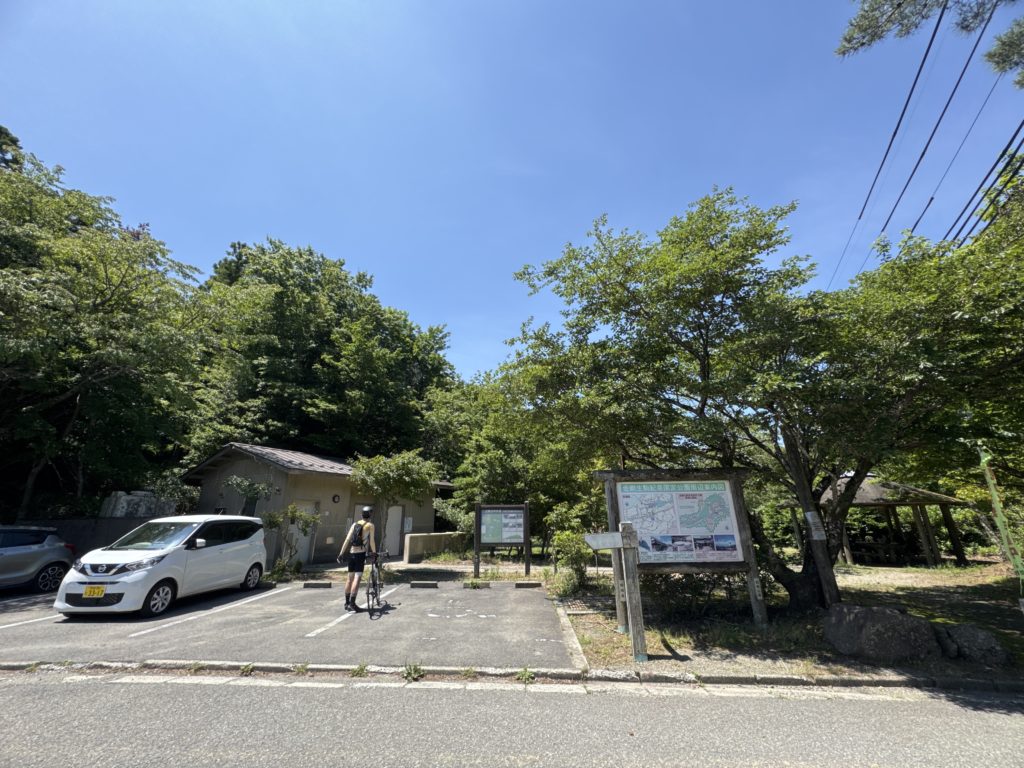 🚻と東屋のある広場前、道路両側に🅿️