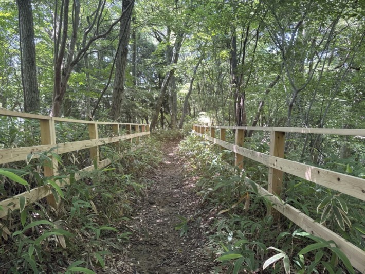 Bコース登山道を下る…自然林保護のため、指定エリアにきれいに整備された柵