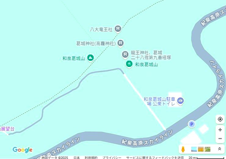GoogleMapには山頂に三つに分かれて神社があり、しかも「高龗神社」は和歌山側、「八大竜王社」が大阪側になってるので…混乱😥