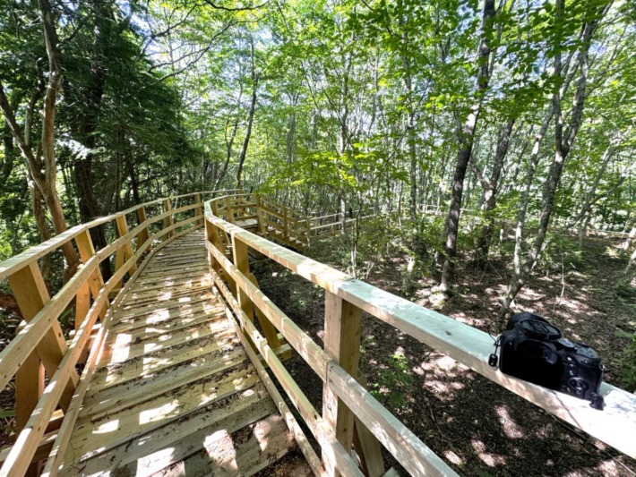 そのためなのか、自然林に囲まれた休憩スポットのデッキが設けられている…癒しの空間