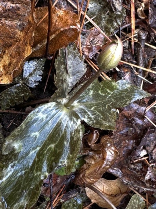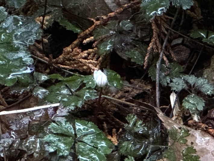 ユキワリイチゲ(雪割一華)もまだ蕾…セミの抜け殻が眠るように寄り添い…