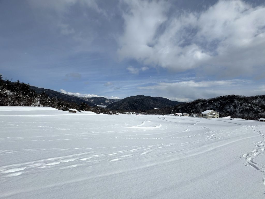 マキノ高原スキー場はリフトが撤去され、子供の雪遊び・スキーデビューに最適なファミリーゲレンデ「冬の子ども王国」なんですね…どうせ〇十年ぶりのスキーなので雪遊び程度でよいかと…距離が短いのでボーゲンでゆるりゆる〜りと…貸し切り状態のスキー場を満喫。