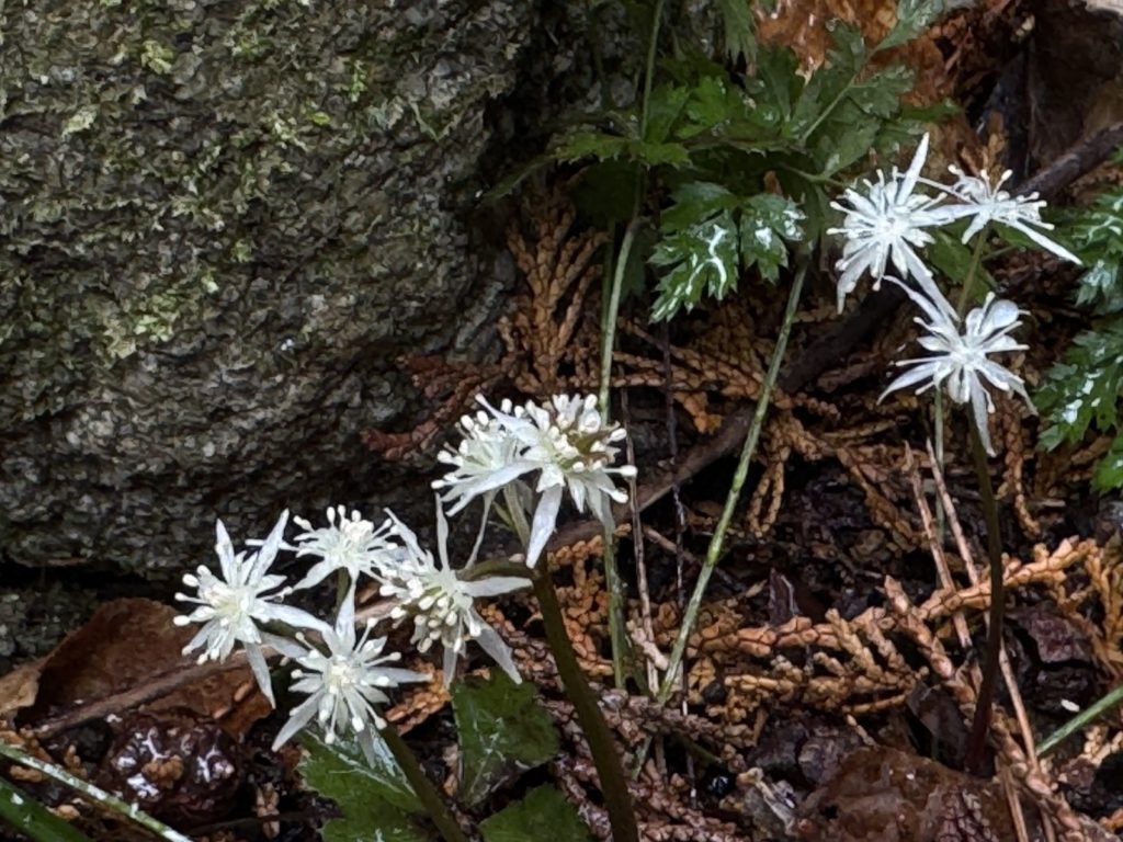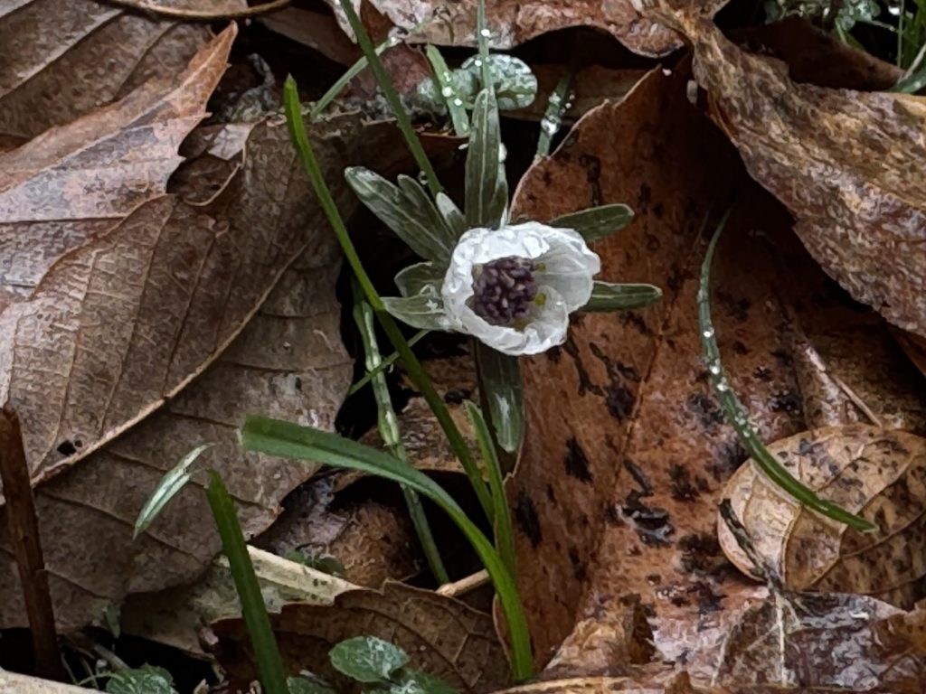 ユキワリイチゲ(雪割一華)もまだ蕾…セミの抜け殻が眠るように寄り添い…