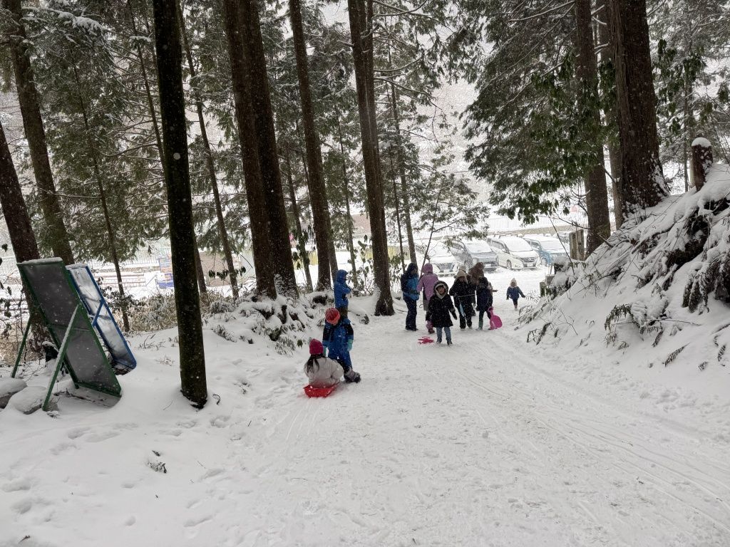 百ヶ辻登山口が、子供たちの格好のソリ滑り場になってる✨🎶