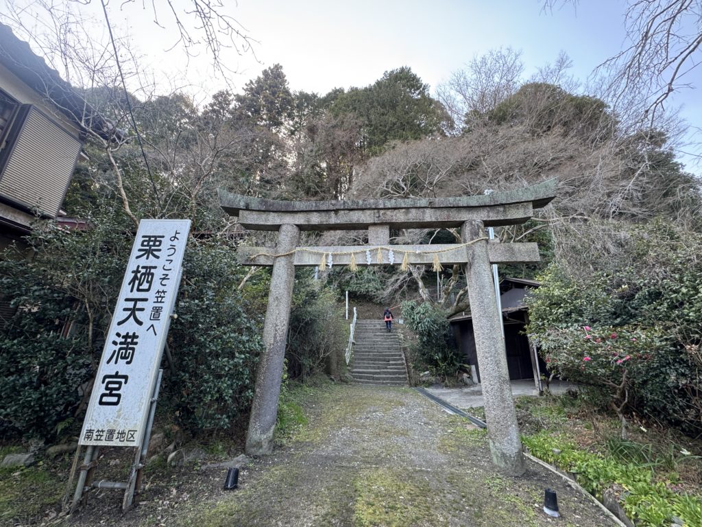 駅前の小山に「栗栖天満宮」…キャンプやハイキングでよく登って、反対側から笠置町内を散策したもんだ…駅側の裏参道は147段の石段で結構しんどいが、カエデ紅葉の頃はとても素敵…