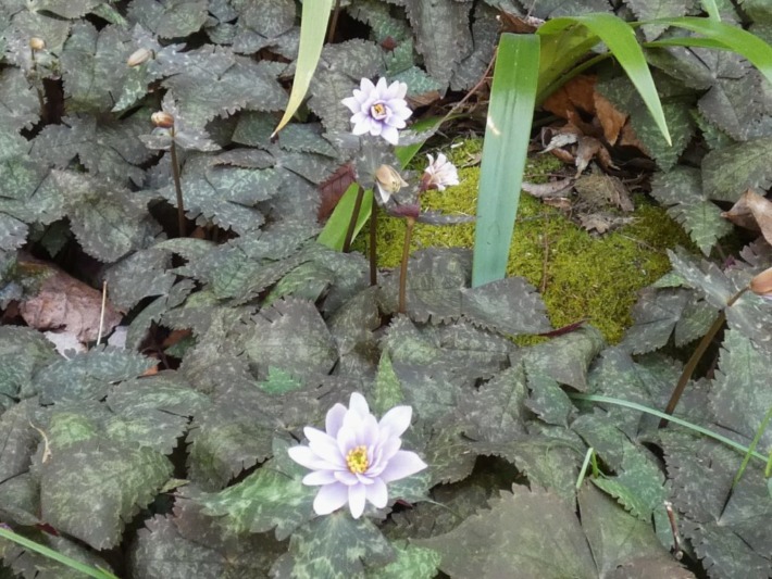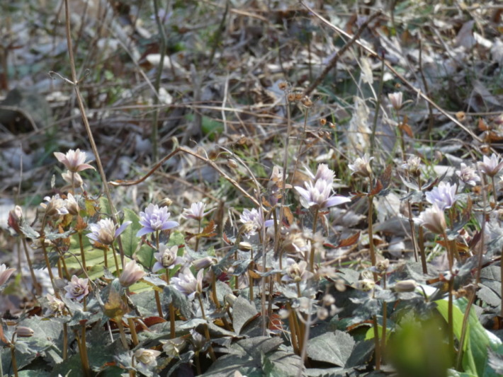 葉の裏はきれいな紫色…別名「ルリイチゲ (瑠璃一華)」は、ユキワリイチゲの花が淡い青紫色をしていることが由来…これはわかるが…