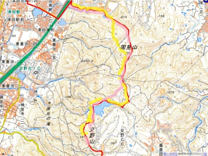 *近畿自然歩道地図のルート赤ラインに、今回の往路をピンク、復路を黄色で重ねています…汚ね~🙇♂️💦