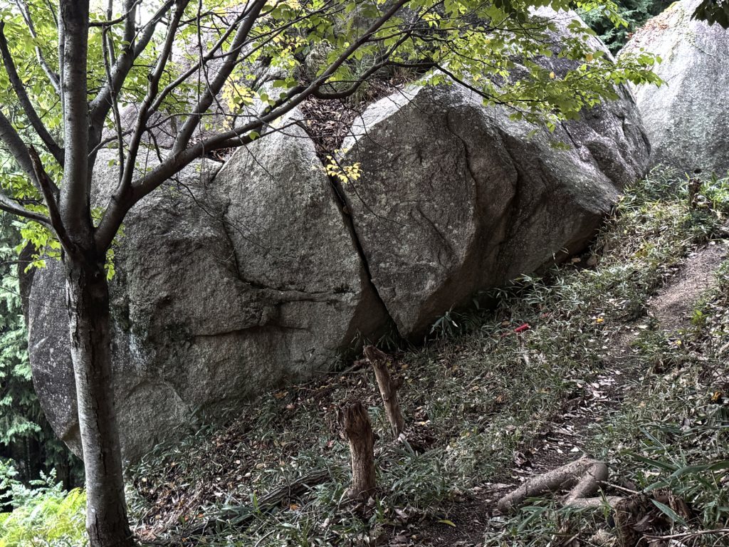🔸観音岩北側、大日如来の「ア」梵字岩の前から下山へ…