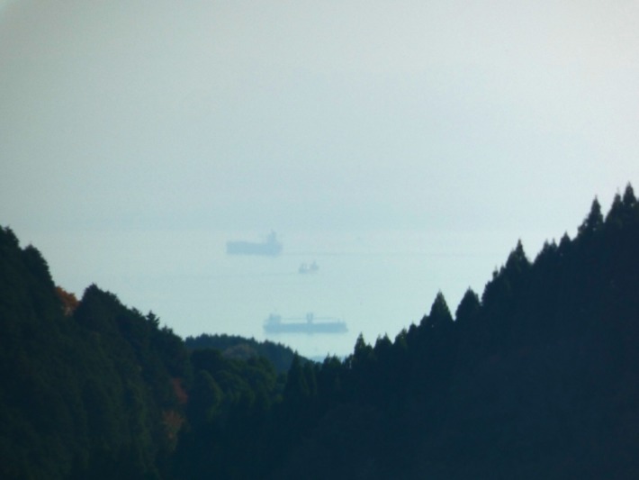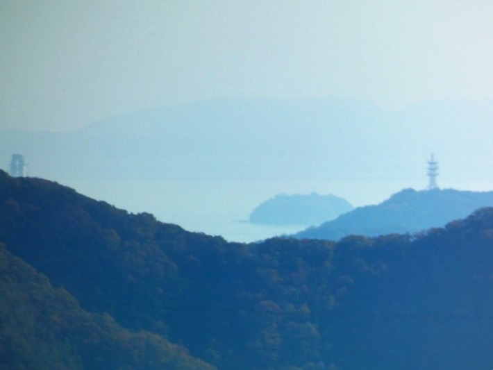 展望台には無料の望遠鏡も設置されているが、LUMIX DC-FZ85📷1200mm望遠で覗いてみた…家島隣の男鹿島だろうか…だとすると、そ向こうに薄っすら淡路島の影…