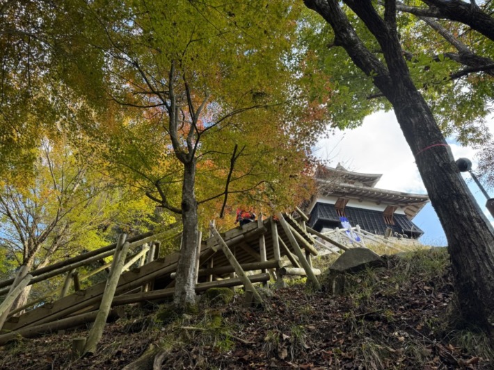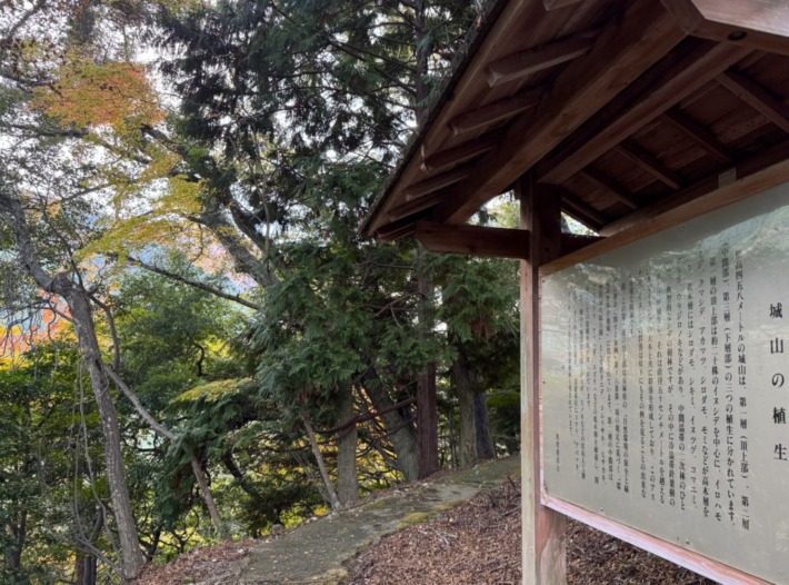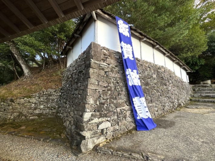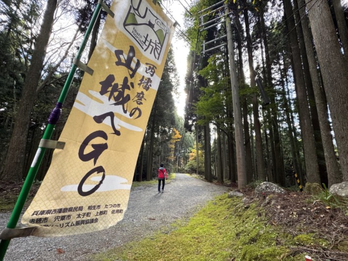 復元された石垣傍から山頂へ…裏向けの「波賀城蹟」垂れ幕は…ご愛嬌~😉♪