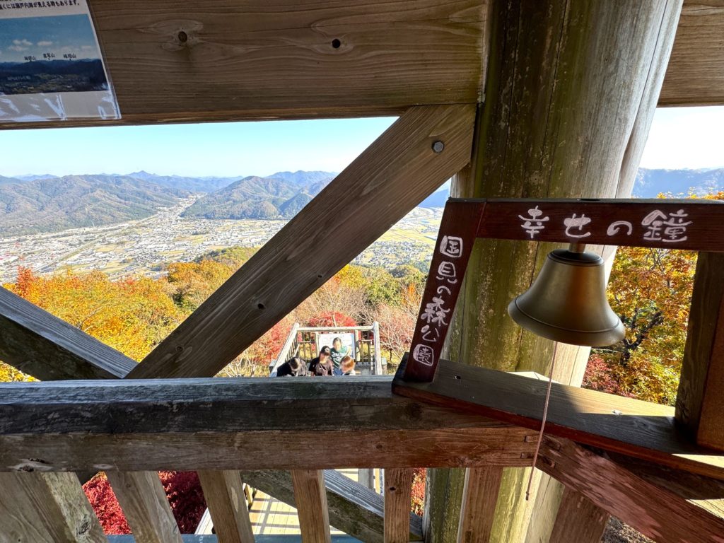 眼下に、山崎町の街並みを揖保川が流れ行き、屈曲して山あいへ…その先はたつの市、姫路市を抜け瀬戸内の海へ…