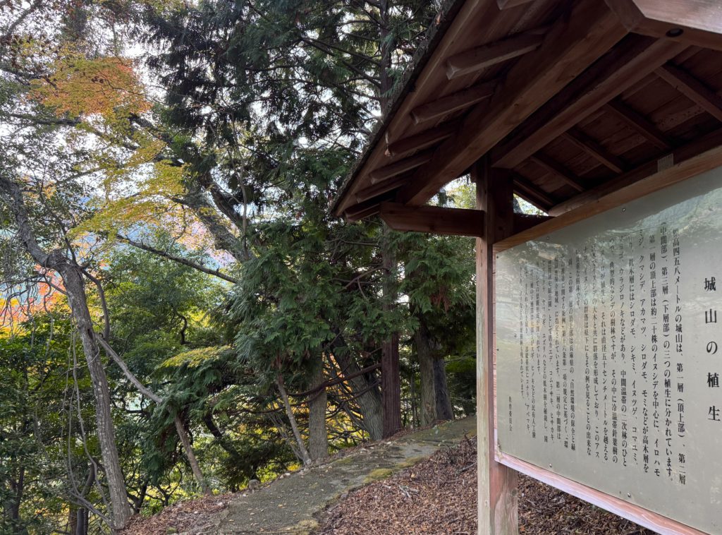 🔸奈良を午前10時ごろ出発…中国道山崎ICから北上、休憩した「道の駅 みなみ波賀」向こうの低山にお城…あれが宍粟50名山 48「城山(じょうやま)」…どっかで聞いたなあ…本来の意味からずれるかもしれないが、歴史的価値のあるお山…まさに「山高きが故に貴からず」なのだ~♪