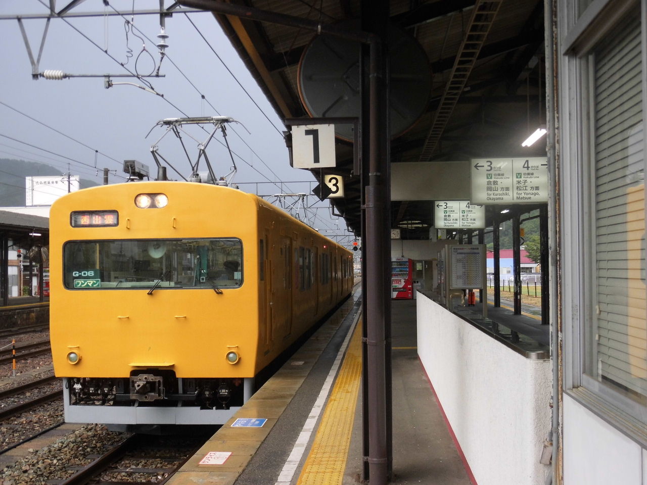 伯備線新見駅で西出雲行きに乗り換え。雨が止んできて良かった!