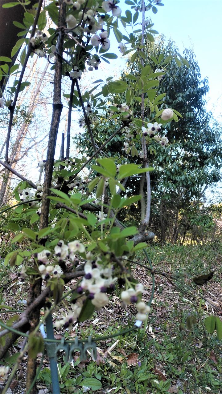 木道(トチノキ橋)の周囲の木々や、近くの鉄製アーチに絡ませたアケビ(木通)がたくさん花をつけていました。