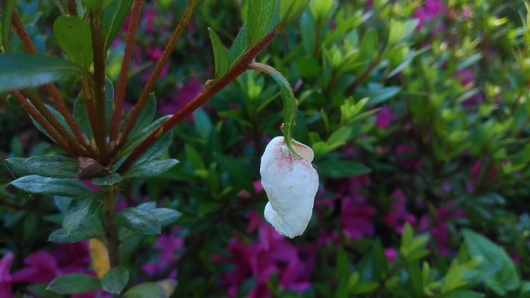 公園館の手前、「芝生の丘」東側のサツキの葉が白い花びらのよう。