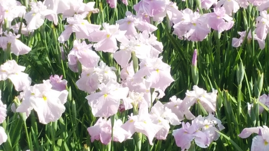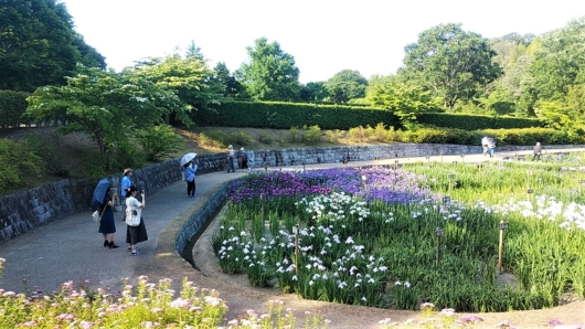 晴れた日の土曜日、花菖蒲お目当ての方々も多いようです。