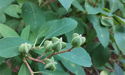 でも先日、王寺町の明神山へハイキングしたとき、登山路の両側に沢山花を着けていたので、そうなんだろうなと得心。