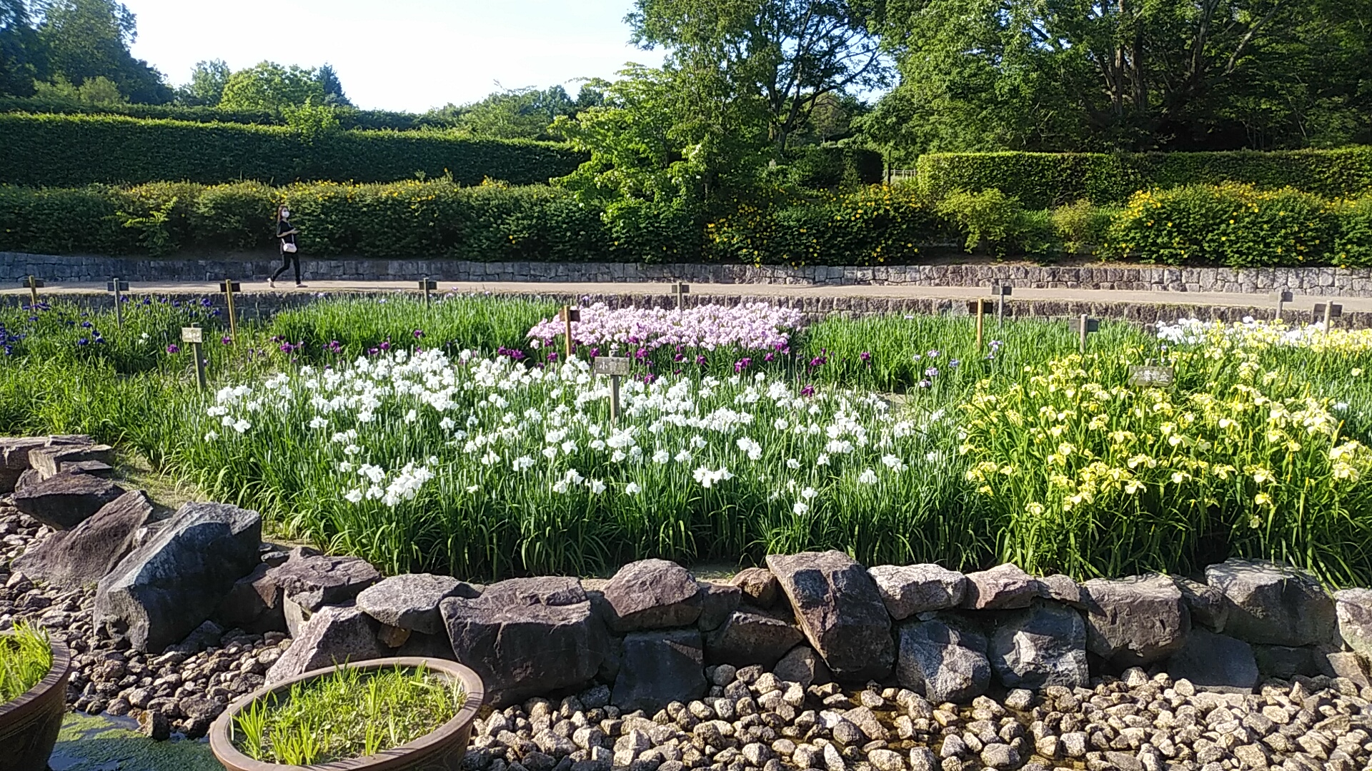 晴れた日の土曜日、花菖蒲お目当ての方々も多いようです。