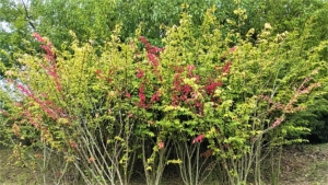 手前のコムラサキ(小紫)の枝に被さるようにこちらは赤いルコウソウ。