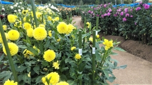 ステージイベントの行われる「大型テント」ある「集いの丘」の南斜面。花の植え込みがかなり進んでいる様子。