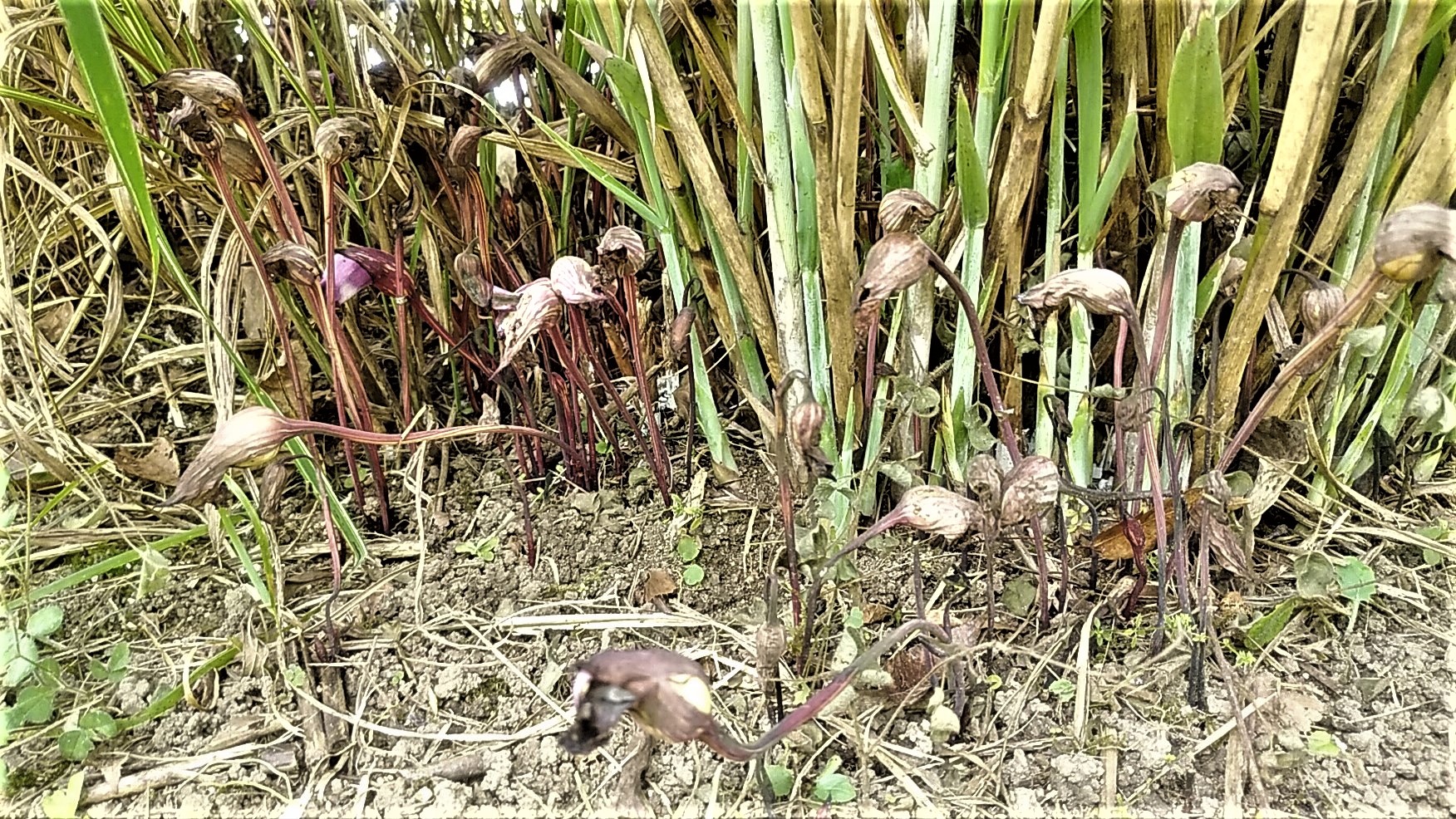 今度はトンネルを抜けた左手のススキの丘。ススキの根元のナンバンギセル(南蛮煙管)。