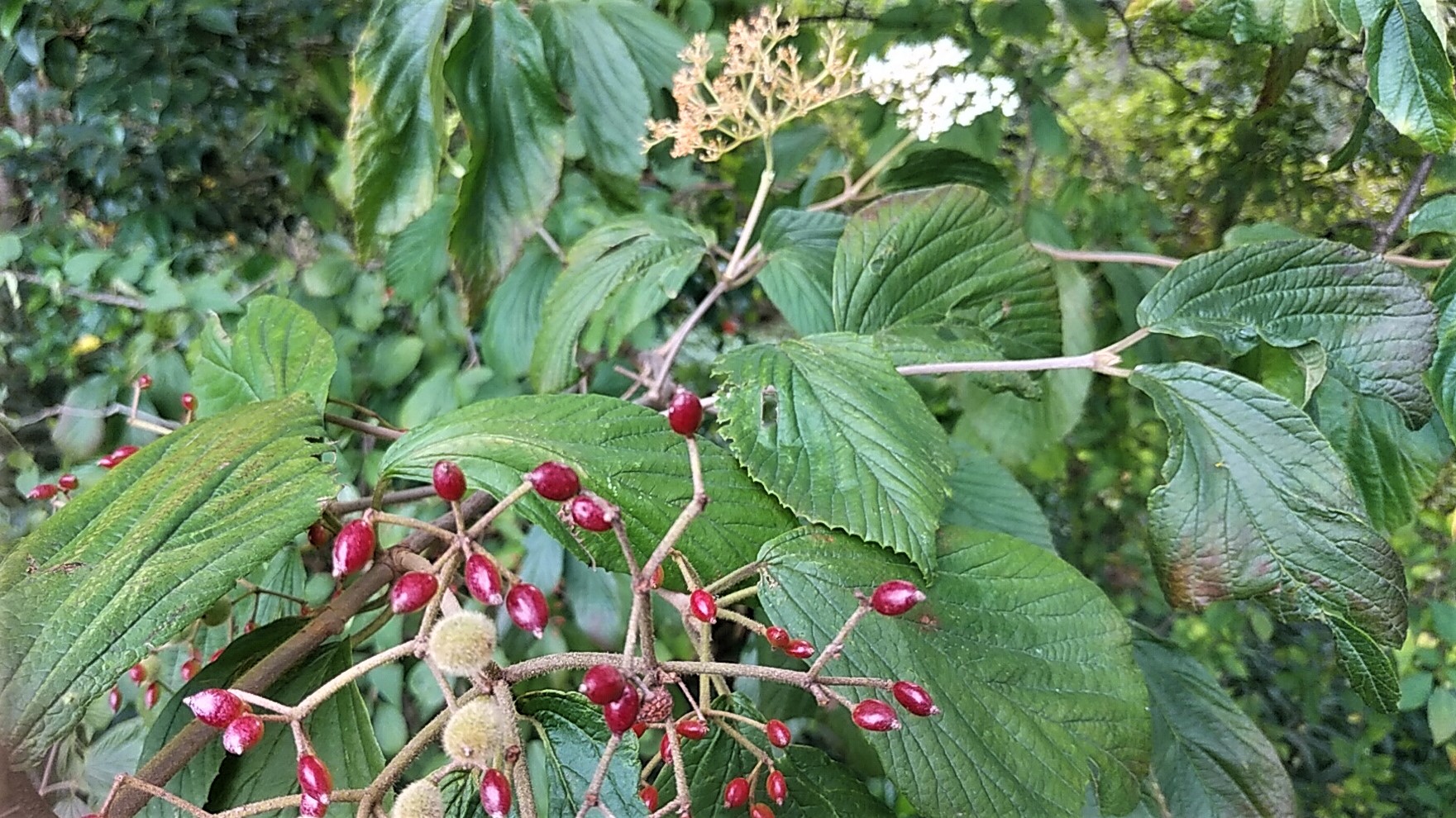 ガマズミ (蒲染)が、花と実の両方つけている!
