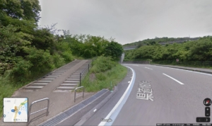 ループ状の「糸山公園線」を自転車を押して行くと、途中に歩行者用の階段。