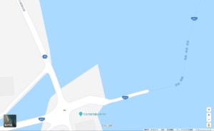 国道317号線を宮窪港へ突き当たると、県道49号線へ左折して「大島大橋」へ向かうが、なんと国道317号は直進して桟橋から海へ突っ込む!!???