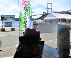 汗だくの向きには、レモンじゃないけど、「伯方の塩」を使った愛媛ご当地ドリンク「塩と夏みかん」が最高!凍らせて販売されていて150円。