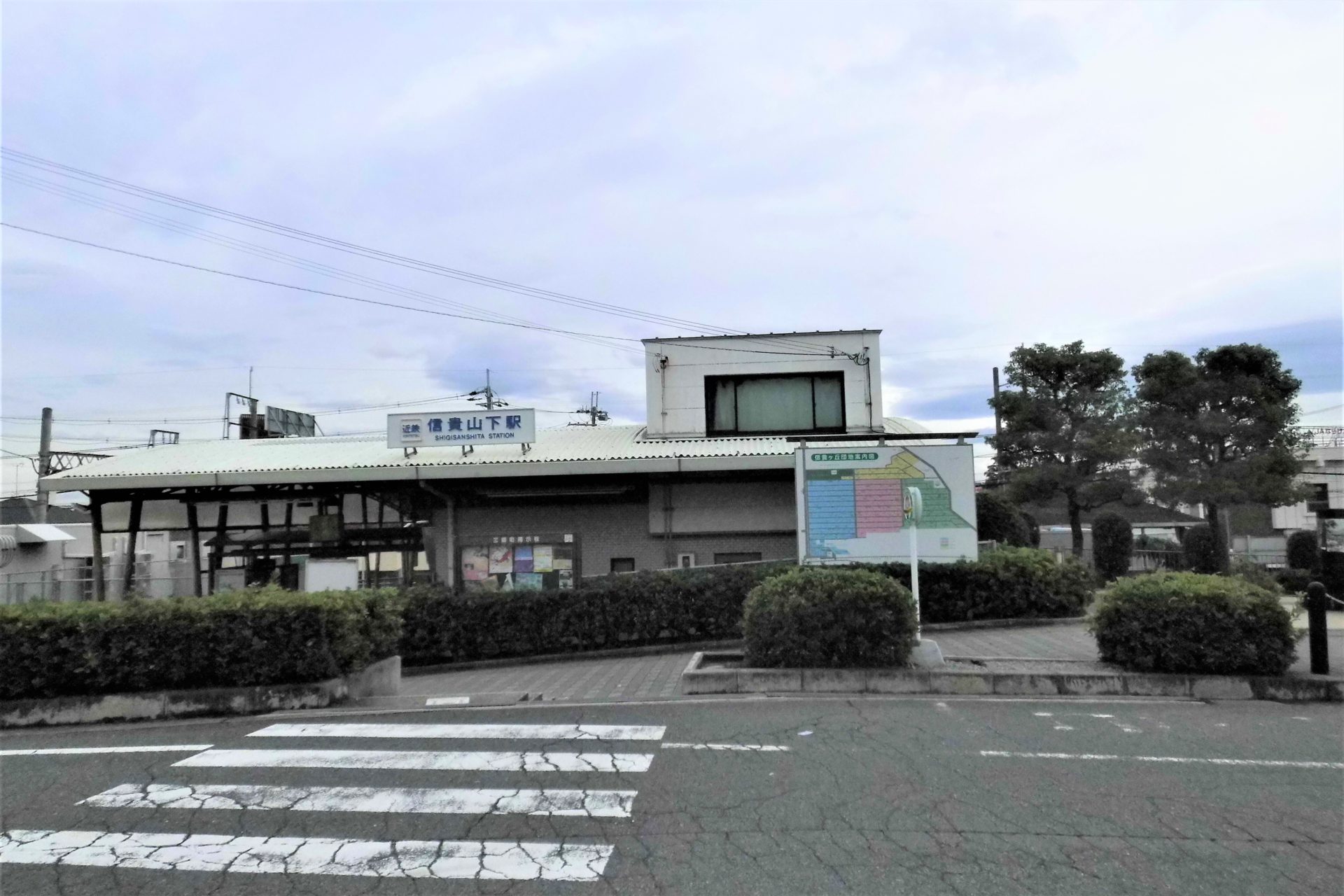 近鉄信貴山下駅。王寺駅北口初の信貴山門行バスの信貴山下バス停もこの前のローターリー。