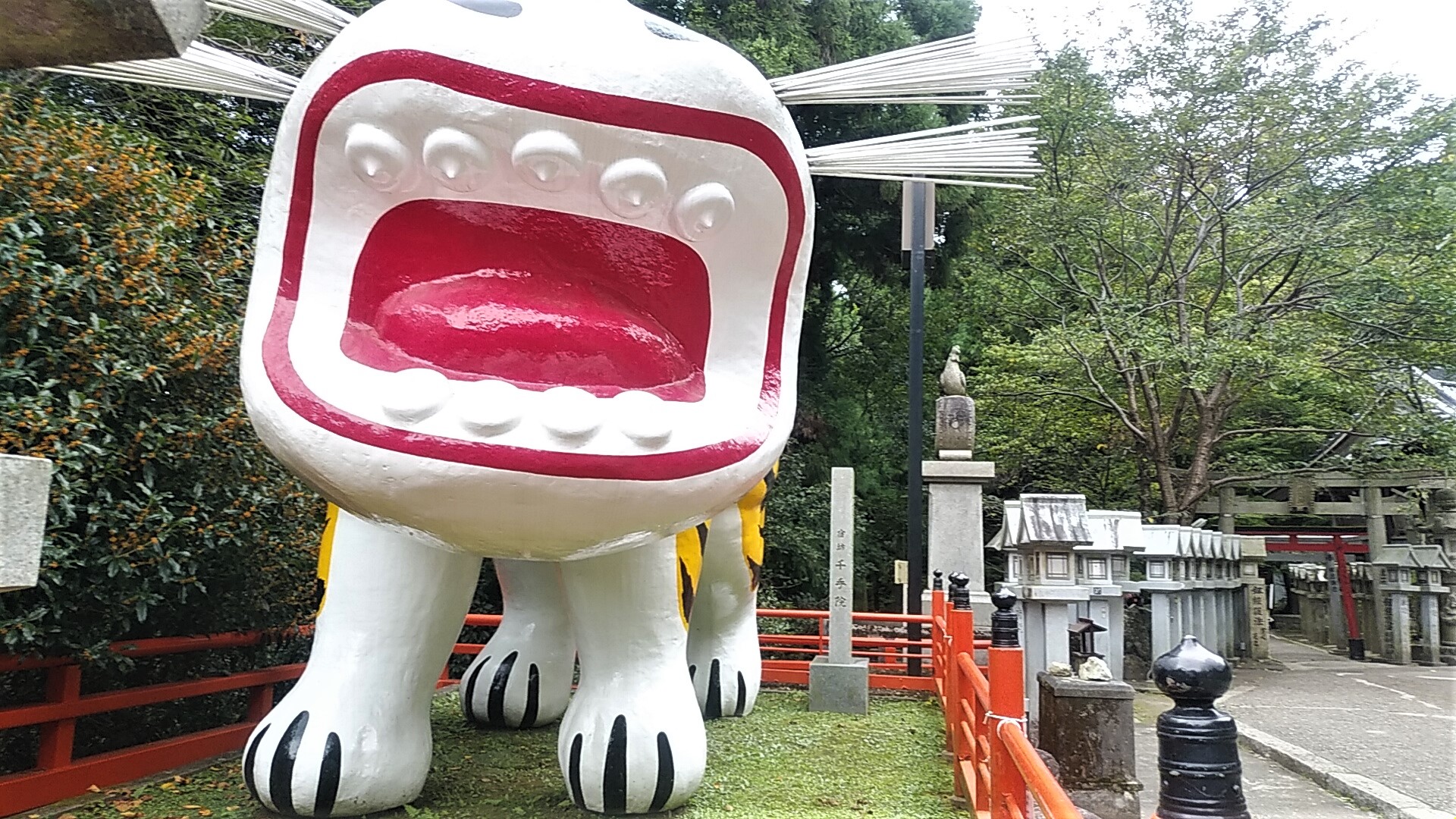 🔹午後1時の集合後、「松永屋敷跡」へ向けて出発。 いつもの「大虎」、気が付けばこれまで、正面から “ご対面" したことなかったなあ(';’)💦 でかい口! 👀💦💦