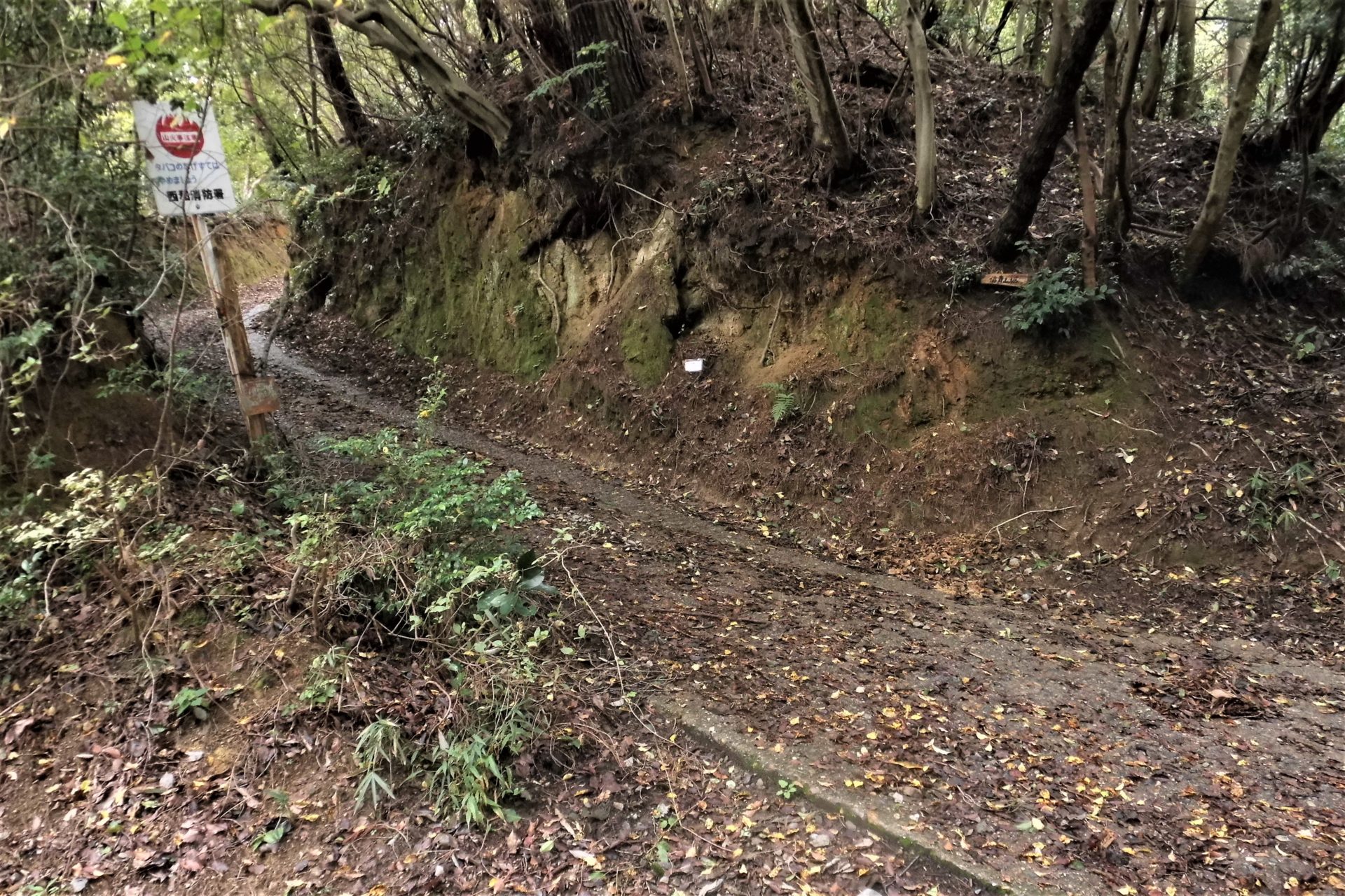 県立清和青陵高校の向かい側にケーブル跡のハイキング道入り口。