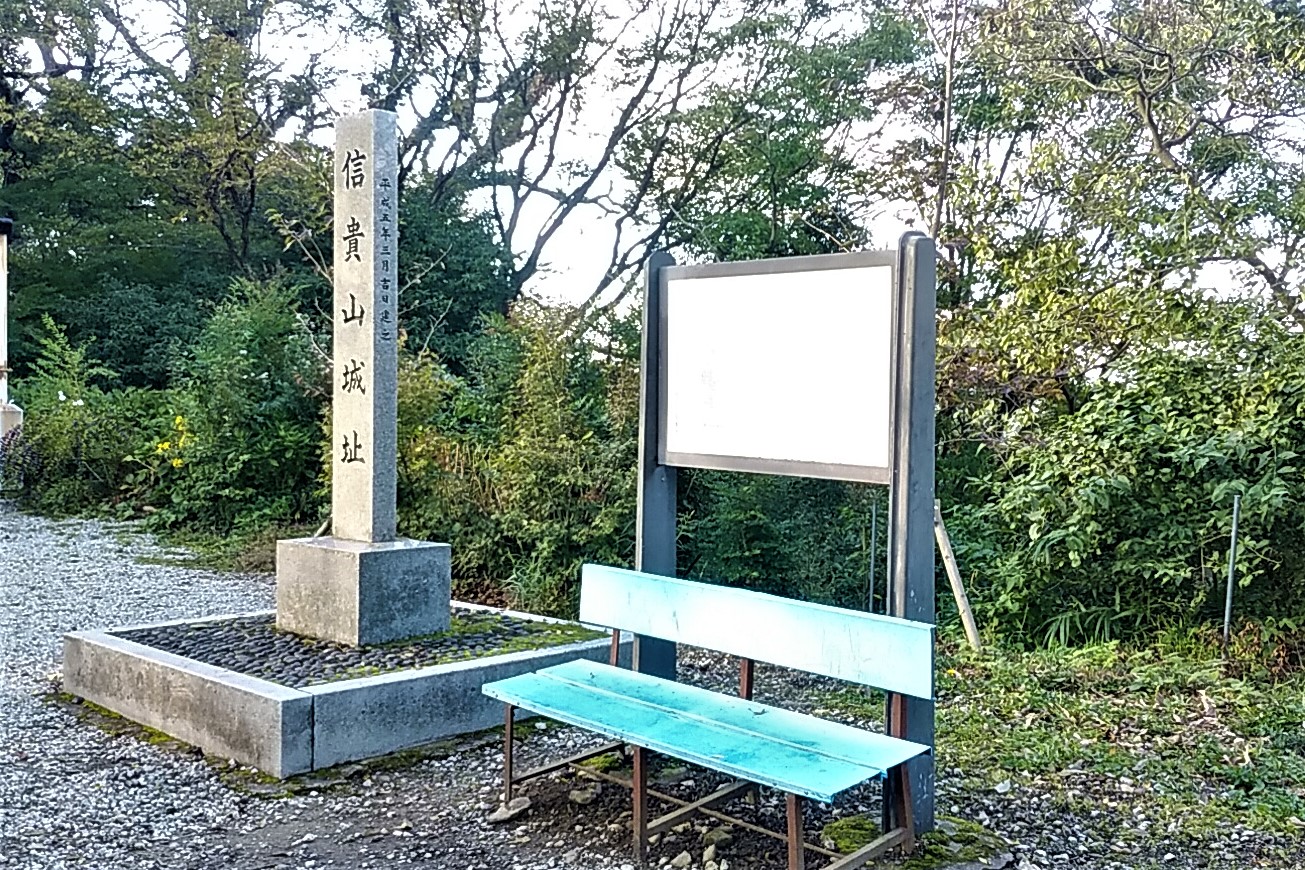 信貴山雄岳の尖がった最頂部の比較的狭いスペースに「空鉢護法堂」が建立されているので、少し下の削平されたこの場所に石碑を立てたのだろう。でも、歴史的には聖徳太子の時代に起源する信貴山朝護孫子寺に分があることになるかな。