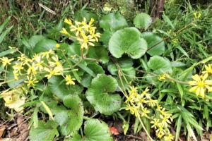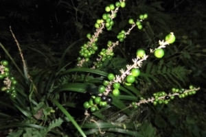 日陰が多く、小川の流れる谷間の道の脇には、ヤブラン(藪蘭)が多い。画像に無いが、この時季、シロバナミズヒキ(白花水引・銀水引)もヤブランとも絡まるように、白花の穂を伸ばしていた。