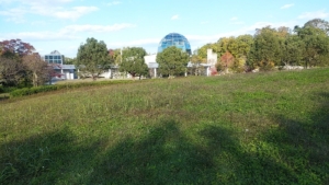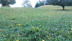 池側から北の「芝生の丘」。小高いところだが、古墳ではないようだ。登ると目の前に「公園館」のドーム。