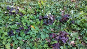 遠目に、広場の草原に何かが散らかっている、、と思ったら、かたばみの仲間のオキザリス・トリアングラリス(紫の舞)だった。