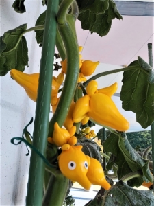 公園館の玄関にツノナス(角茄子)。当然"眼"は後付け (^^♪ なかなか粋なことを!ところで、フォックスフェイス の方が通りがいいかもね。